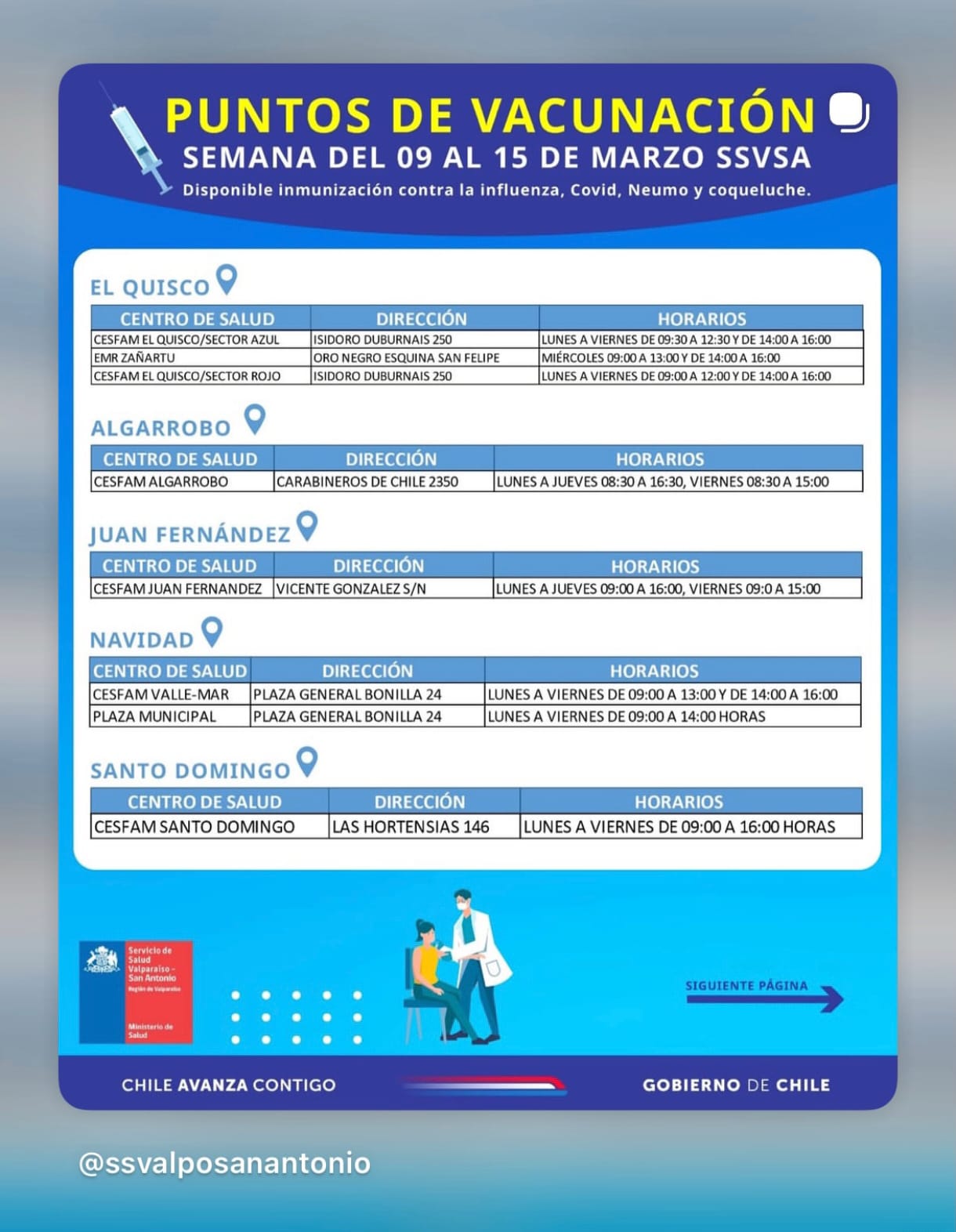 📍 Revisa los horarios y puntos de vacunación en las imágenes adjuntas y en los canales oficiales del Servicio de Salud Valparaíso–San Antonio.